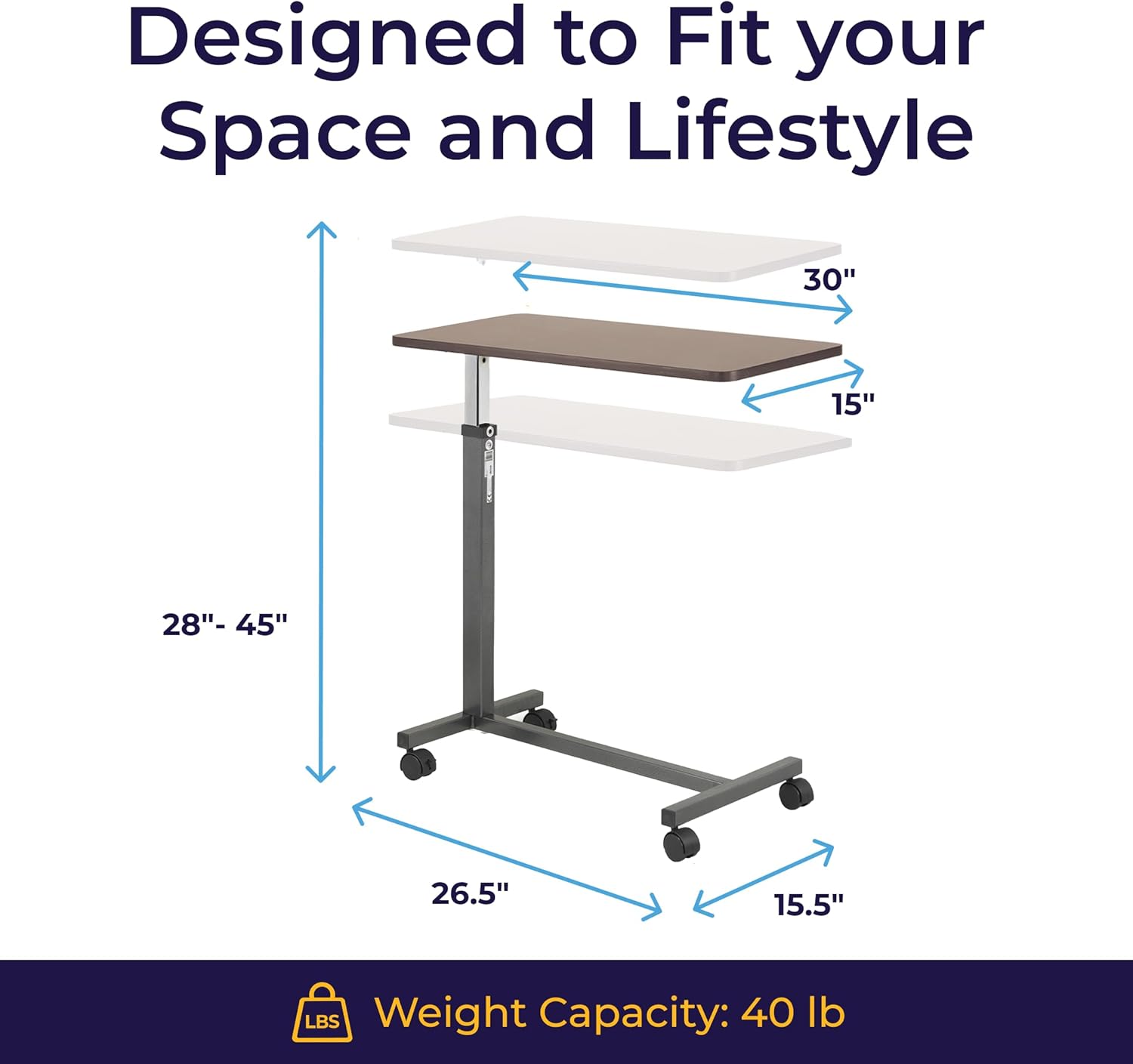 • Customizable Height Positioning: This table offers height adjustments with a user-friendly, easy lift mechanism that allows placement between 28 and 45 inches